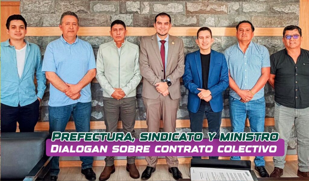 El prefecto de Pastaza André Granda, mantuvo una reunión de articulación junto al Sindicato Único de Trabajadores, Lizeth Piedra, Directora Ejecutiva del Congope y el Ministro de Trabajo, Harold Burbano, para abordar temas relacionados con el contrato colectivo y fortalecer la gestión interinstitucional, en beneficio de las y los trabajadores de la provincia.