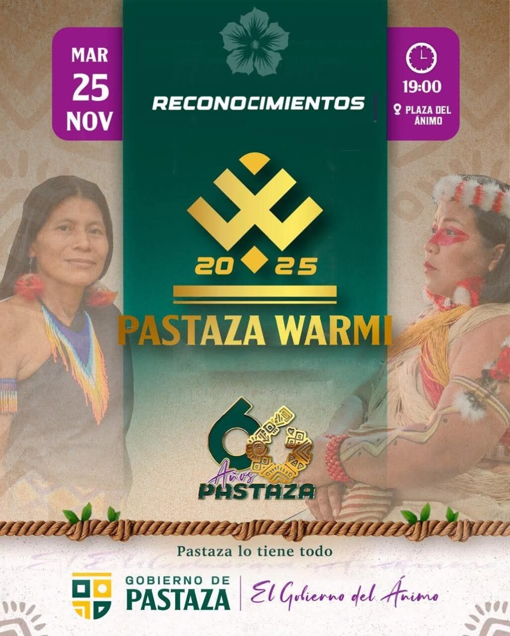 Una noche para honrar su trabajo y liderazgo, celebrar sus historias y seguir impulsando el camino de las mujeres que construyen una Pastaza con más ánimo, más fuerza y más futuro. Recordemos que nuestra ordenanza institucionaliza el 25 de noviembre al conmemorarse el Día Internacional de la Eliminación de la Violencia contra la Mujer